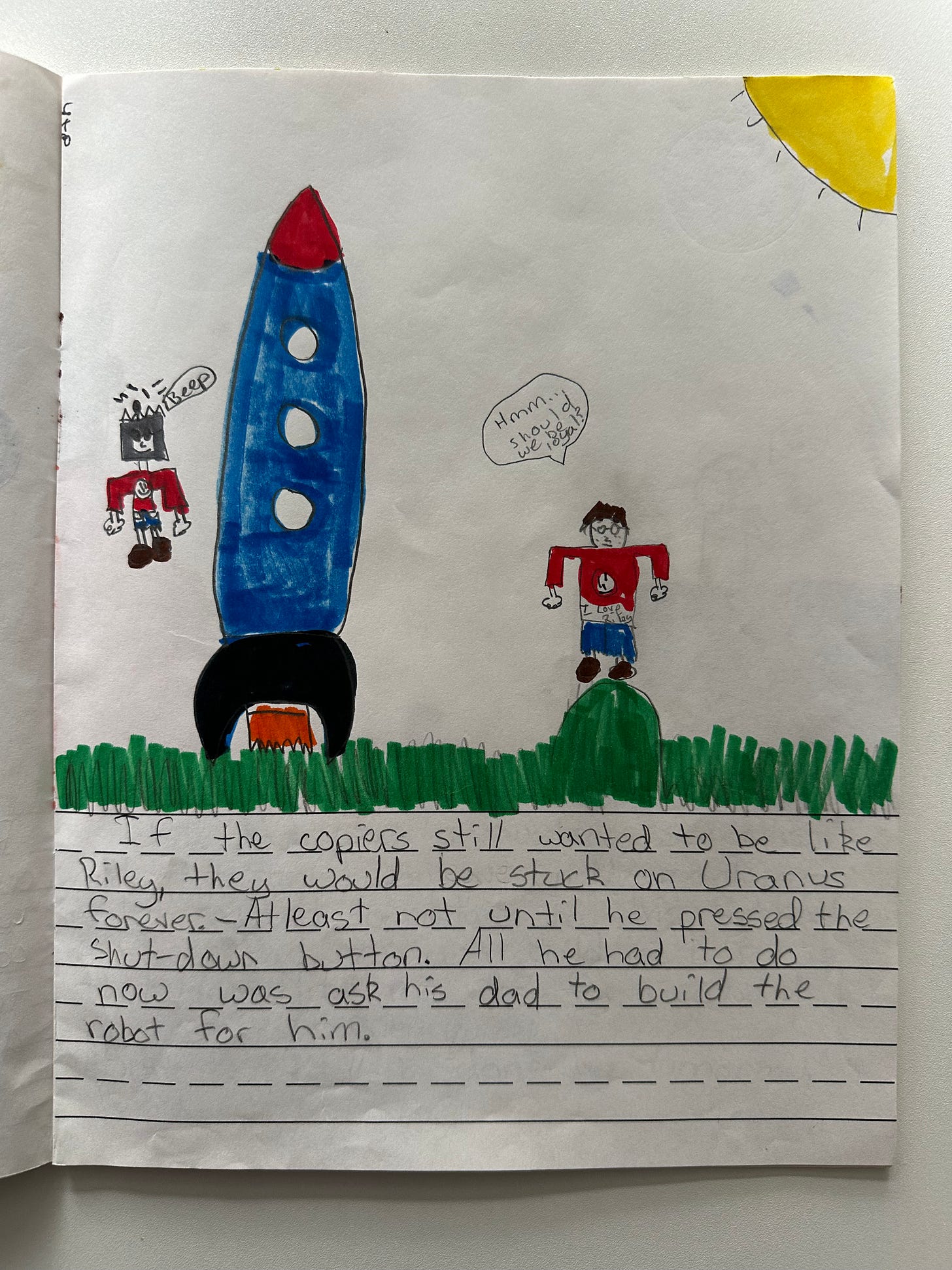 If the copiers still wanted to be like Riley, they would be stuck on Uranus forever — At least not until he pressed the shut-down button. All he had to do now was ask his dad to build the robot for him.