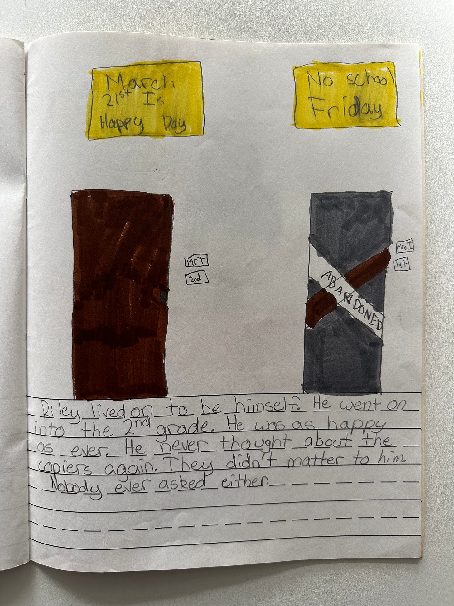 Riley lived on to be himself. He went on into the 2nd grade. He was as happy as ever. He never thought about the copiers again. They didn’t matter to him. Nobody ever asked either.